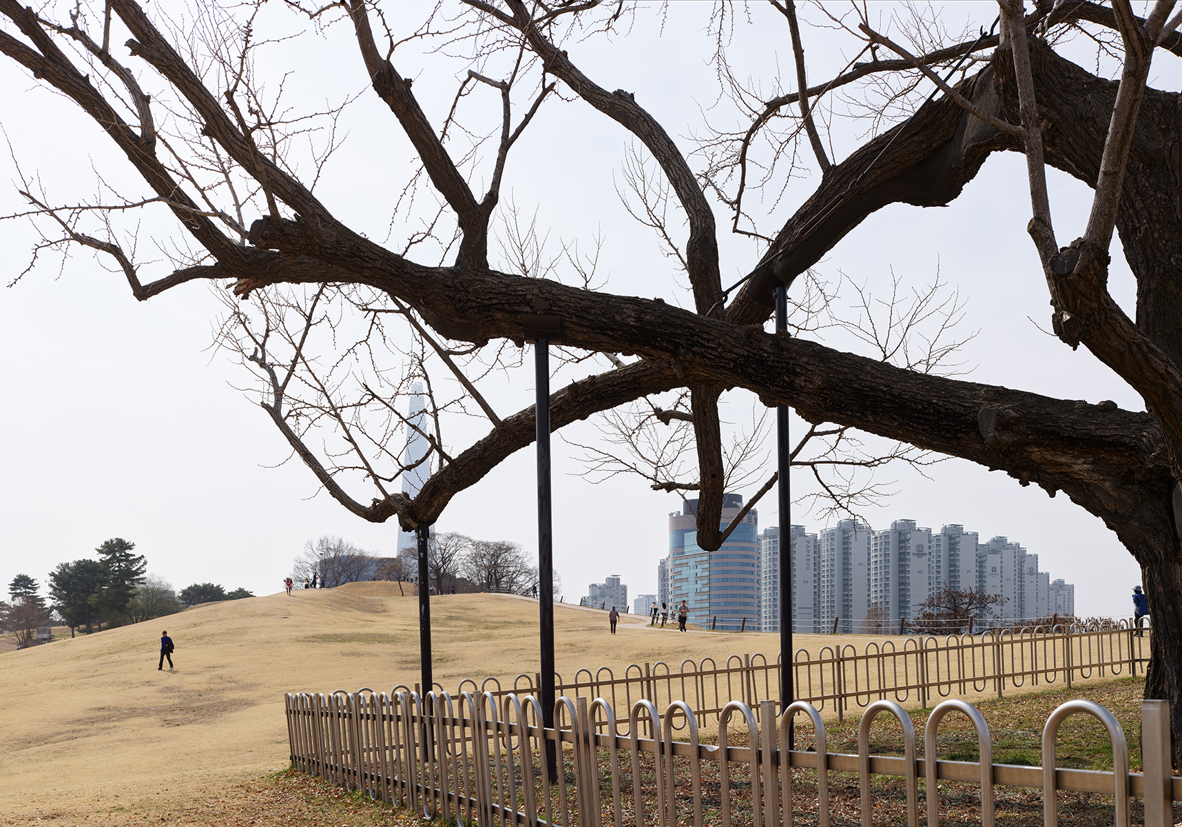 38/75 – Seoul - Lotte World Tower seen from Olympic Park, with centenary Ginkgo Biloba